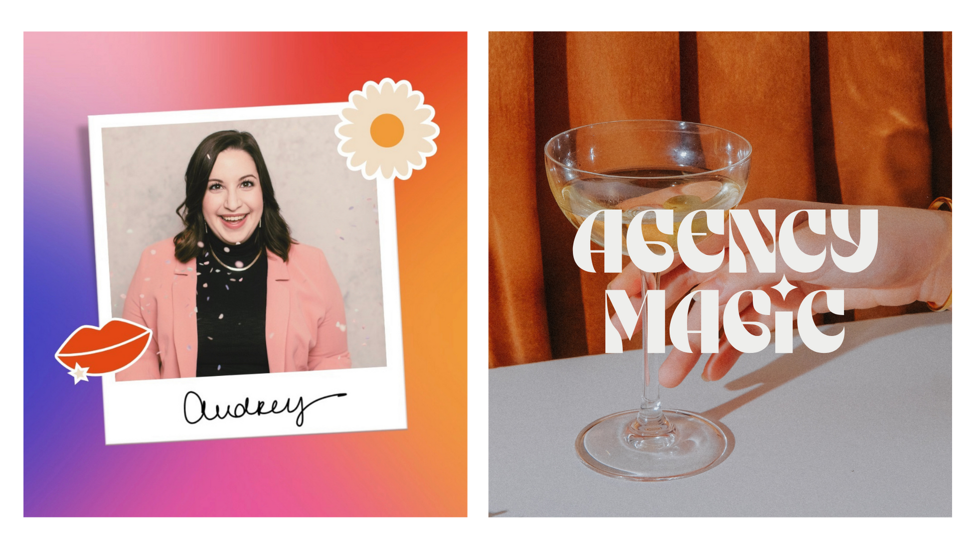 While working at Audrey Digital, I was tasked with creating the brand identity and social templates for Agency Magic. AD CEO, Audrey Saccone, has built her network on not only her professionalism and kickass work ethic, but her bold and ambitious energy. She is a female founder who supports and uplifts women, so I wanted this brand to have the same kind of feminine and bold aura she carries day to day.